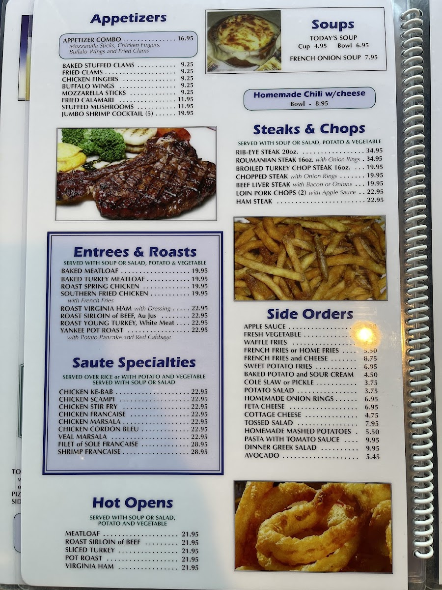 - Light Meals and Sides: Salads, homemade onion rings, and seasoned home fries complement the main dishes.